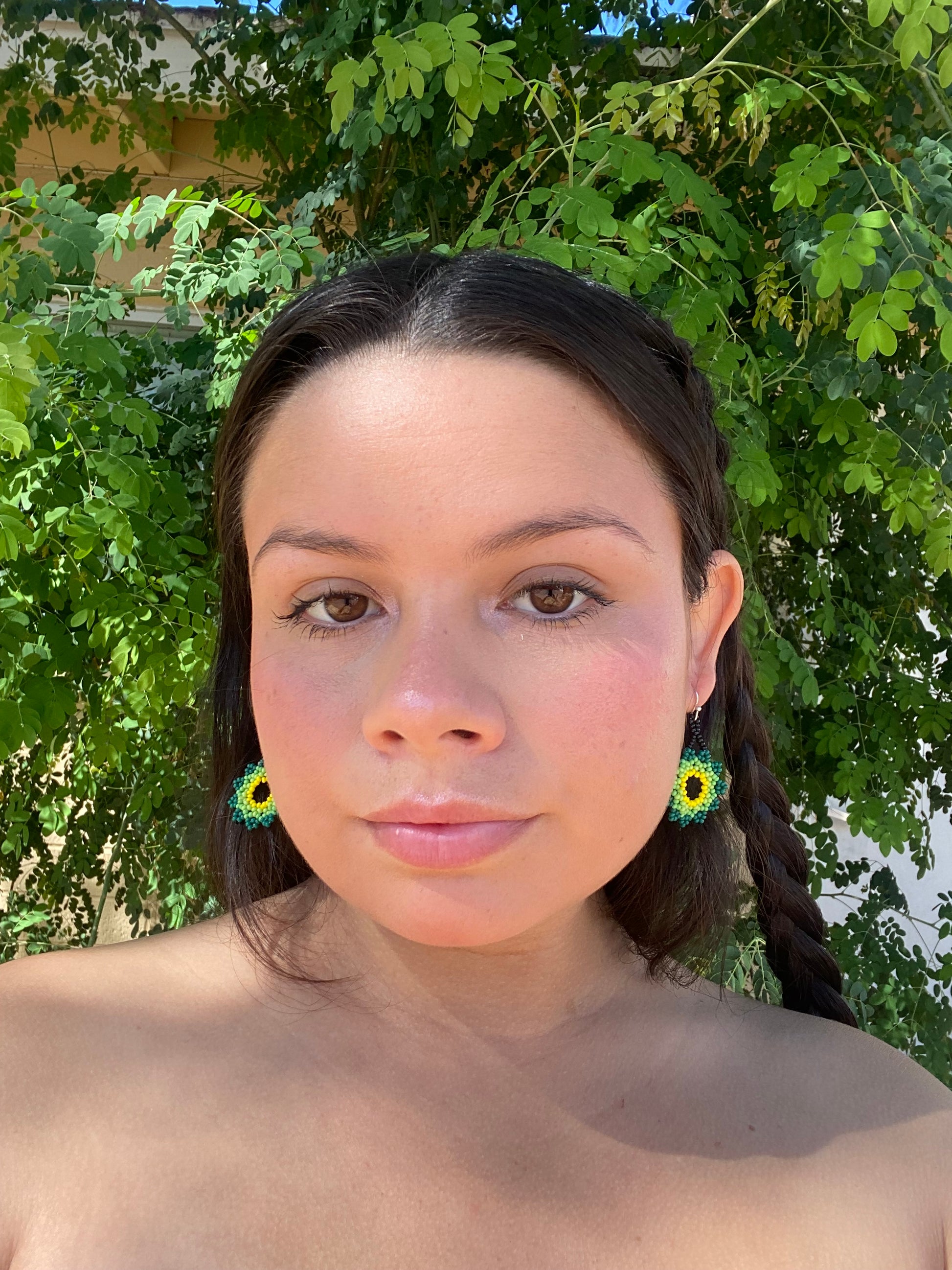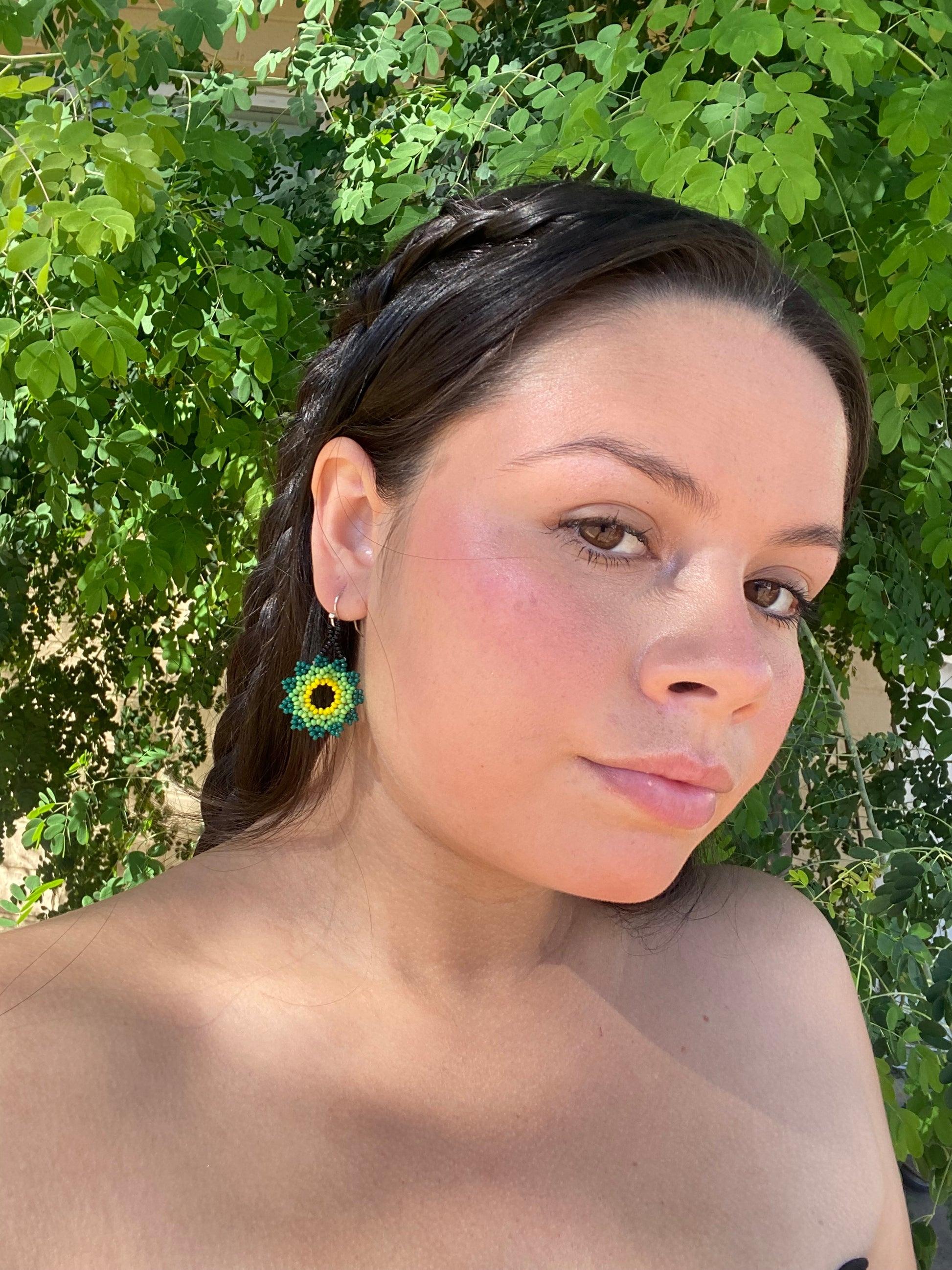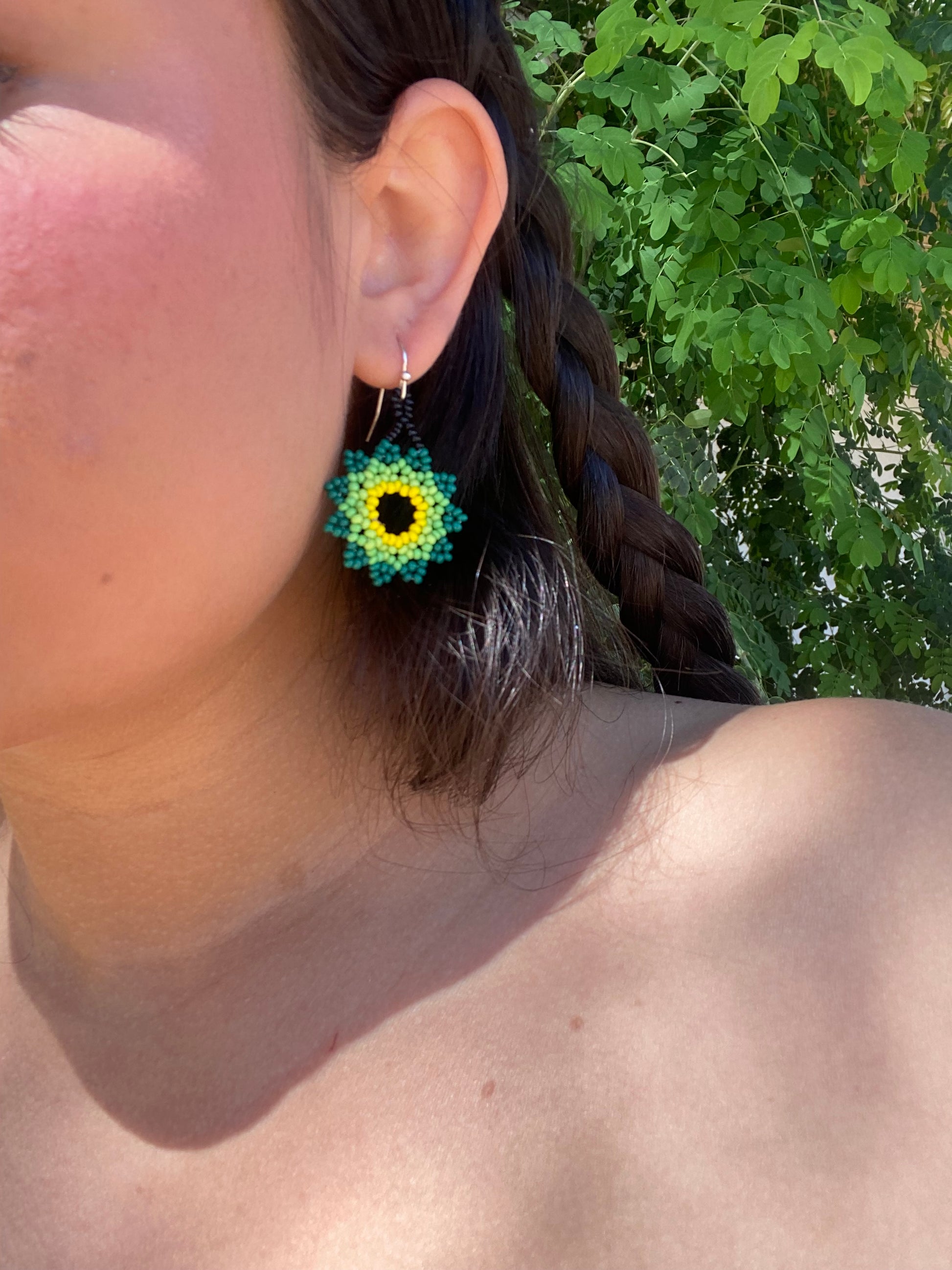 handmade seed bead earrings inspired by the colorful petals of a flower.